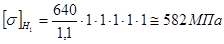 1 Назначение материалов и расчет допускаемых напряжений. Принимается для изготовления шестерни и колеса Сталь 45 с термообработкой – улучшение. Обоснование. Зубья нарезают после термообработки заготовки, при этом достигается достаточная точность изготовления зубчатых колес без использования дорогих финишных операций. Колеса хорошо прирабатываются. По табл.24,25 выбираем: для шестерни - твердость поверхности зубьев Н1=269…302 НВ (наиболее вероятная твердость 285 НВ); для колеса - твердость поверхности зубьев Н2=235…262 НВ (наиболее вероятная твердость 250 НВ); Допускаемые контактные напряжения