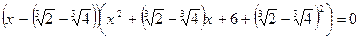 Тогда После того, как найден один из действительных корней, следует проверить, а не существуют ли другие действительные корни. Для этого, применяя теорему Безу, устанавливаем, что кубический трёхчлен будет нацело делится на двучлен