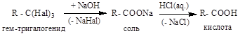 Карбоновая кислота получается всегда. Вид (состав) второго продукта (HY) определяется классом гидролизуемого функционального производного кислоты: (МеОН) от соли, (R-OH) от сложного эфира, (HCl) от хлорангидрида, (NH3) от амида, (R′-COOH) от ангидрида.