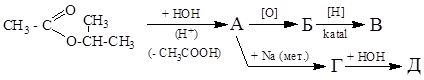 11. С5Н10О2; 12. [2,3-диметилбутановая кислота]; 13. [о-толлилбутират]; 14. [β-метилвалериановая кислота]; 15. [фенилкапронат]. Задание 2 Написать реакции следующих превращений. Указать типы реакций и дать названия всем органическим соединениям. 1.