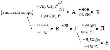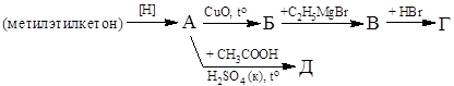 8. CH4 → (CH3)3C-OH [Cl2; Na; Mg (абс.эф.); NaOH(водн.)] 9.