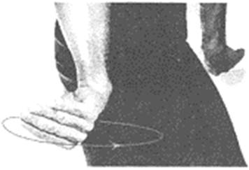 За подушками внутрь энергетического тела будут втягиваться толстые упругие энергетические жгуты. Их ни в коем случае нельзя упустить, поэтому в течение всего движения по нисходящей спирали кисти рук плотно сжаты в кулаки. Окончив пятый виток, необходимо плотно прижать кулаки внутренними сторонами к наружным поверхностям бедер (рис. 10.5). 10.6. Скользя пальцами по бедрам и не отрывая кистей от ног, аккуратно разжать кулаки, ладонями плотно прижать сердцевины вытянутых из «дыры» энергетических жгутов к бедрам и выждать две-три секунды, пока они как следует «прилипнут» к ногам, слившись с мощными струящимися по ногам потоками энергии (рис. 10.6).
