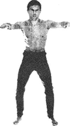 10.5. Втянуть «подушки» внутрь энергетического тела, по нисходящей спирали как бы размазывая их в его объеме. Как и восходящая, эта спираль состоит из пяти направленных внутрь витков. Расположение и размах витков - точно такое же, но в обратном порядке. По мере выполнения нисходящего движения постепенно согнуть ноги в коленях до стандартного положения рабочей стойки.