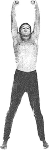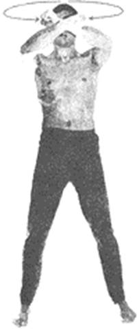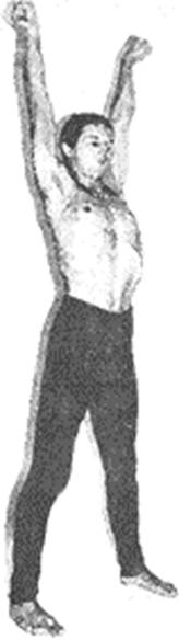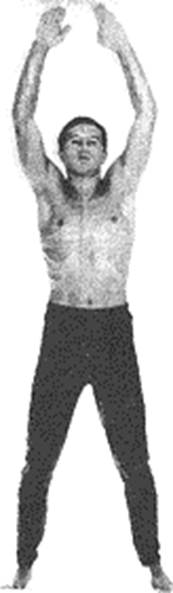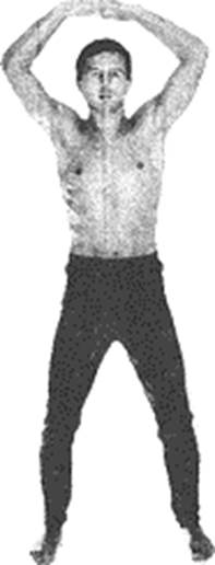 ПРОНИКНУТЬ В ДЫPУ НАД ГОЛОВОЙ - РЕЗЮМЕ: 1. Из исходного положения принять рабочую стойку. 2. Три круговых движения кистями возле бедер. Направление вращения - внутрь. 3. По широким восходящим спиральным траекториям поднять руки вверх. 4. С быстрым вдохом вонзить пальцы снаружи в самые середины энергетических «подушек» над головой и, крепко сжав кулаки, ухватиться за энергетические жгуты внутри этих подушек. 5. Втянуть «подушки» внутрь энергетического тела, по нисходящим пятивитковым спиралям. 6. Аккуратно разжать кулаки и «приклеить» энергетические жгуты к ногам, 7. С быстрым мощным вдохом молниеносно выбросить выпрямленные руки вертикально вверх. 8. С плавным выдохом медленно опустить руки. 9. Выполнить кистями три направленных наружу круговых движения. 10. Поднять руки вверх по широкой восходящей спирали. Пять витков, направление - наружу. П. Ударом изнутри-наружу с быстрым вдохом ухватиться за сердцевины энергетических «подушек» в «дыре над головой». 12. Сквозь «дыру над головой» по широкой нисходящей спирали втянуть энергетические «подушки» и тянущиеся за ними жгуты энергии внутрь кокона. Пять витков, направленных наружу. 13. Прижать ладони к бедрам, немного выждать и с резким вдохом «метнуть» руки вверх. 14. С медленным выдохом осторожно опустить руки.