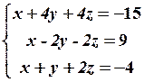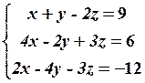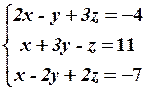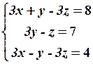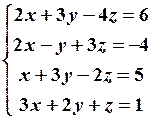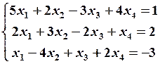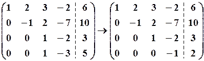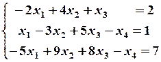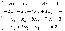Найденная матрица имеет треугольный вид; по этой матрице запишем систему уравнений, эквивалентную исходной системе,