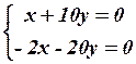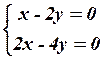 Определитель этой системы равен нулю. Это означает наличие линейной зависимости между уравнениями системы. Замечаем, что первое уравнение получается из второго и поэтому его можно отбросить. Имеем
