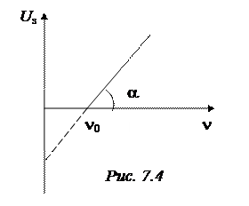 Точка пересечения графика с осью абсцисс даёт значение красной границы фотоэффекта n0.