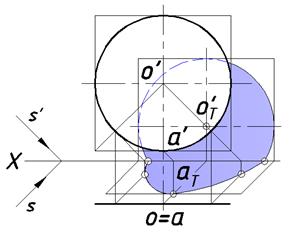 Рис. 19. Тень круга на двух плоскостях проекций Рассмотрим задачи, связанные с построениями собственных и падающих теней на плоских фигурах.