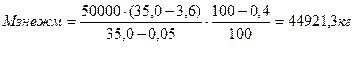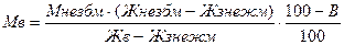 де Мв - маса вершків, одержаних пери сепаруванні, кг; Мнезбм – маса незбираного молока, кг; Жнезбм – масова частка жиру у незбираному молоці, %; Жв - масова частка жиру у вершках, %; Жзнежм – масова частка жиру у знежиреному молоці, %; В – гранично допустимі втрати жиру при сепаруванні, 0.16% 2.Визначають масову частку знежиреного молока, отриманого при сепаруванні: