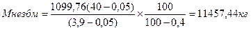Мзнм= 11457,44 – 1099,76=10357,71 кг