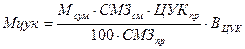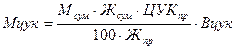 де ЦУКсум, ЦУКпр - масова частка цукру у вихідній суміші і в продукті,%. Вцук - коефіцієнт втрат цукру (1,65%). б) для згущеного знежиреного молока з цукром маса цукру, Мцук, кг, розраховують згідно з умовою