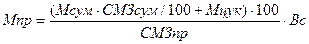 де Мнап – маса наповнювача, кг; НАПсм, НАПпр - масова частка наповнювача в суміші і продукті,%. Пнап - коефіцієнт втрат наповнювача. 8. Визначення маси готового продукту. Маса згущеного продукту без цукру або сухого продукту, Мпр, кг