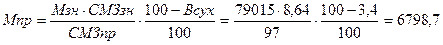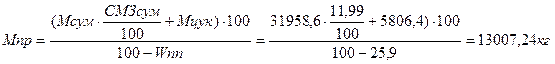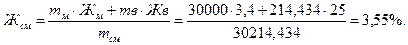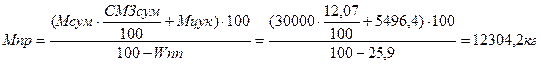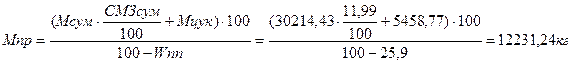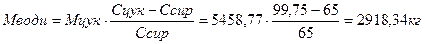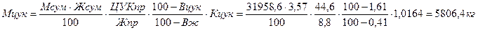 2.Планові показники продукту: Жпр = 8,8%; СЗМЗпр =20,7%; Опр = 0,425, ЦУКпр=44,6%, Wпр=25,9%. 3.Порівняємо Ом і Опр Ом = Опр, 0,425 = 0,425. 4.Нормалізацію не проводимо. Маса нормалізованої суміші дорівнює масі незбираного молока. 5.Коефіцієнт, що враховує величини нормативних втрат під час випаровування та пакування розраховується за формулою:
