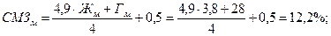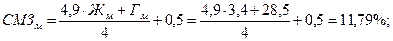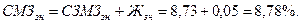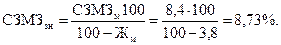 2.Планові показники продукту: Жпр = 8,8%; СЗМЗпр =20,7%; Опр = 0,425, ЦУКпр=44,6%, Wпр=25,9%. 3.Порівняємо Ом і Опр Ом < Опр, 0,405 < 0,425. 4.Обчислимо коефіцієнт, що враховує нормативні втрати жиру і сухих речовин (Вж=0,41%, ВСМЗ=0,56%):