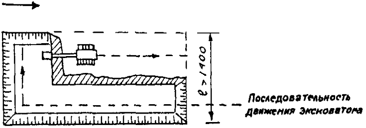 Рис. 4. Разработка выемки поперечными "лентами" экскаватором, оборудованным обратной лопатой