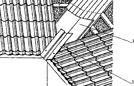1 - гладкий лист; 2 - декоративная планка ендовы