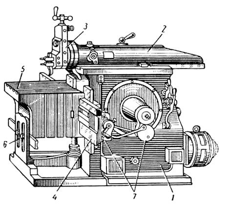 Станки строгально-протяжной группы К данной группе относят станки, имеющие прямолинейное движение резания независимо от того каким инструментом они работают: резцами (строгальные и долбежные станки) или протяжками и прошивками (протяжные станки). В строгальных и долбежных станках движение подачи осуществляется резцом или заготовкой. Эти станки предназначены для обработки линейчатых поверхностей, описанных прямой, перемещающейся по направляющей. Относительное перемещение заготовки и инструмента по направляющей обеспечивается движением подачи, а по образующей – движением резания. В протяжных станках движение подачи заложено в конструкцию протяжки, в которой каждый последующий режущий зуб выступает над предыдущим.