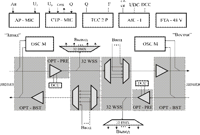 Рис. 1.1. Структурная схема реконфигурируемого узла ввода/вывода оптических каналов (ROADM)