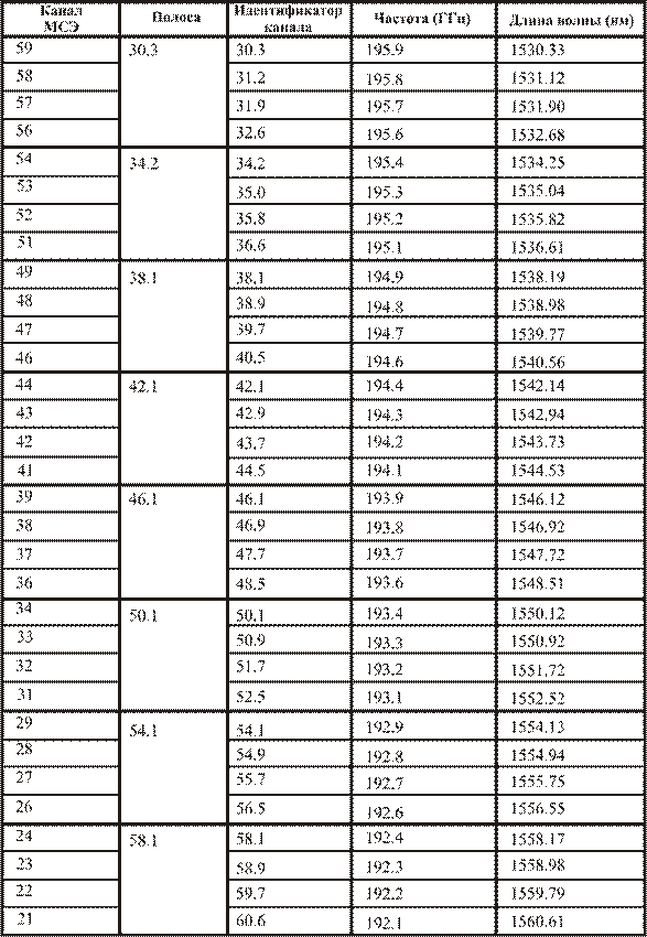 Частотный план плат 32WSS и 32-DMX-C приведен в табл.4.3.