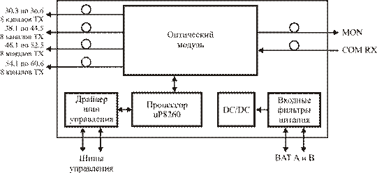 Основным элементом платы 32-DMX-С является оптический модуль. Структурная схема оптического модуля приведена на рис. 4.6.