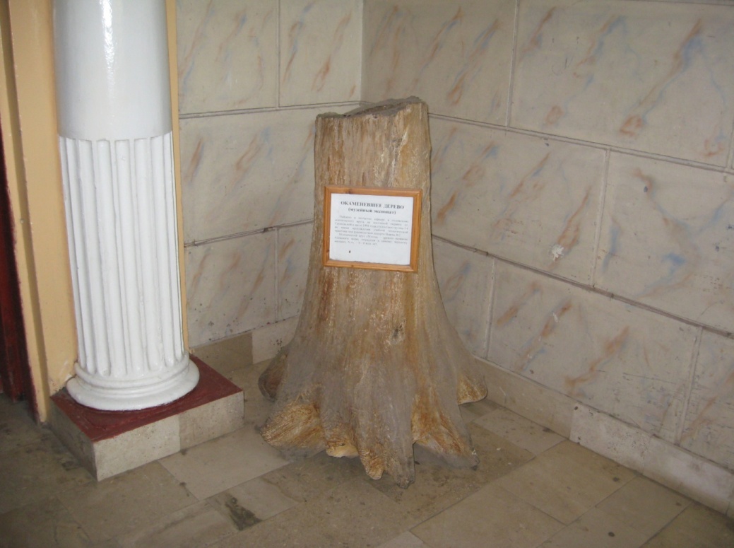 Рис. 4. Экспонат окаменевшего дерева, найденного в Грушевском карьере студентами гр. I-4 ГГФ (1998 г.) при прохождении учебной геологической практики