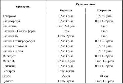 Курс приема препаратов должен быть рассчитан на ликвидацию дефицита минерала в организме. Минимальный курс составляет не менее трех недель. В последнее время все большее внимание в спорте обращают на применение магния. Магне В6. Комбинированный препарат, состоящий из соли магния и витамина В 6 (пиридоксина). С физиологической точки зрения магний (Mg) – катион преимущественно внутриклеточной локализации. Ионы Mg уменьшают возбудимость нейронов и замедляют нервно-мышечную передачу, являются одним из основных активизаторов ферментов, улучшающих проницаемость мембраны, и регулируют трансмембранную циркуляцию ионов. Mg как активатор ферментов крайне необходим для восполнения энергетических запасов в работающей мышце. Пиридоксин в качестве кофермента участвует во многих метаболических процессах. В организме через ряд реакций превращается в метаболически активную форму – пиридоксаль-5-фосфат. Улучшает всасываемость Mg из желудочно-кишечного тракта, является транспортом для Mg внутри клетки, повышает проницаемость клеточной мембраны и фиксирует ионы Mg внутри клетки, таким образом препятствуя возникновению его дефицита. После орального приема Магне В 6 из ЖКТ абсорбируется около 50% Mg. В организме Mg распределяется в основном во внутриклеточном пространстве (около 99%). Около 2/3 внутриклеточного Mg распределяются в костной ткани, и остальная треть – в гладкой или поперечно-полосатой мускулатуре, а также в эритроцитах. Примерно 1/3 дозы принятого внутрь Mg выводится с мочой. Показания в спорте. Большой объем и интенсивность физических нагрузок. Перетренированность. Неблагоприятные климатические условия. Смена часовых поясов. Дефицит Mg в организме вследствие повышенного выведения (интенсивное потоотделение, особенно при высокой температуре воздуха и большой влажности), повышенной потребности (период роста, период выздоровления, стресс, физические и нервные перегрузки), сниженное потребление Mg (несбалансированное питание, диета); нарушенное всасывание в кишечнике (высокое содержание жира и белков в пище, заболевания ЖКТ). В случае сочетания дефицита Mg с недостатком Са рекомендуется компенсировать в первую очередь недостаток Mg и только после этого начинать курс Са. Симптомы дефицита Mg (носят неспецифический характер): сердечно-сосудистые (боль в области сердца, тахикардии, экстра-систолия, все виды аритмий); церебральные (головная боль, головокружение, плохая концентрация, нарушения памяти, психические расстройства типа раздражительности или бессонницы, чувство хронической усталости); висцеральные (боли в животе, тошнота, диарея, запоры); мышечно-тетанические (мышечные судороги в области затылка, спины, лица, парастезии конечностей, судороги икроножных мышц, подошв, стопы). Явными симптомами дефицита Mg у спортсмена является снижение работоспособности. Падение уровня содержания Mg после спортивной нагрузки объясняется перемещением Mg во внутриклеточные области, т е. в активные мышечные клетки. С помощью Mg можно добиться лучшей переносимости нагрузок в видах спорта на выносливость (легкая атлетика, лыжный спорт, биатлон, гребля, плавание и т д.). Побочное действие. Со стороны ЖКТ: диарея, боли в животе; со стороны ЦНС: при приеме высоких доз (свыше 2 г пиридоксина в сутки) и длительном лечении (несколько месяцев) могут отмечаться парес