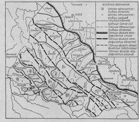 Для собственно горных районов Украинских Карпат характерны такие типы местности: низкогорно-холмистый с елово-буковыми лесами; низкогорных хребтов с елово-широколиственными лесами; средневысотных моноклинальных хребтов с елово-широколиственными лесами; горганский с острыми каменистыми гребнями и каменными осыпями; верховинский низкогорно-увалистый с остатками еловых и елово-буковых лесов, полонйнско-субальпийский с реликтами древнего пенеплена, черногорский полонинско-альпийский с древнеледниковыми урочищами, низкогорный с дубово-буковыми лесами, низкогорный и среднегорный с буковыми лесами, низкогорный и среднегорный с хвой-но-широколиственными лесами, среднегорный с еловыми лесами, среднегорный с елово-пихтовыми лесами. В речных долинах Украинских Карпат можно наблюдать такие типы местности: нижнетеррасово-долинный, верхнетеррасово-долинный, горноущельный, котловинно-террасовый, террасово-оползневой. Их гидротермические свойства, характер почвенно-растительного покрова связаны не только с топографическим положением в горной долине, но и с положением в определенной высотной полосе гор. Из общего физико-географического обзора можно сделать вывод, что Карпатская горная страна подразделяется на крупные ландшафтные, провинции: Западные Карпаты, Восточные Карпаты, Южные Карпаты, Трансильванское плато и Западные Семиградские (Румынские) горы. Провинция Восточных Карпат в свою очередь может быть подразделена на подпровинции Лесистых Карпат и Румынских (Семиградских) Карпат. Украинские Карпаты, следовательно, представляют основную часть подпровинции Лесистых Карпат. В пределах Украинских Карпат выделяются 7 физико-географических областей, которые соответствуют основным морфоструктурным зонам и отличаются в целом своеобразием ландшафтов. Физико-географические области делятся на физико-географические (ландшафтные) районы, которые отличаются характером сочетания типов местности и урочищ, т.е. морфологической структурой ландшафта (рис. 19). Рис. 19. Украинские Карпаты. Область Предкарпатья (I). Физико-географические районы: 1 — Присанский; 2 — Санско-Днестровский; 3 — Верхнеднестровский; 4 — Дрогобычский; 5 — Стрый-ско-Жидачевский; 6 — Присвичский; 7 — Ломницко-Болеховский; 8 — Прилуквинский; 9 — Быстриц-кий; 10 — Быстрицко-Прутский; 11 — Верхнепрутский; 12 — Прутско-Черемошский; 13 — Прутско-Си- ретский; 14 — Буковинский. Область Внешних Карпат (II). Подобласть Скибовых Карпат (а). Физико-географические районы: 1 — Район краевого низкогорья; 2—Район Верхнеднестровских Бескид; 3 — Район Сколевский Бес-кид; 4 — Район Скибовых (Внешних) Горган; Подобласть Покутско-Буковинских Карпат (б). 5 — Район низкогорий Покутско-Буковинских Карпат; 6 — Район среднегорных хребтов Покутско-Буковинских Карпат. Водораздельно-Верховинская область (III). Физико-географические районы: 1 — Стрыйско-Санская верховина; 2 — Воловецко-Межгорная Верховина; 3 — Приводораздельные (Внутренние) Горганы; 4 — Район Ворохта-Путильского низкогорья; 5 — Ясинская котловина. Лолонинско-Черногорская область (IV). Подобласть Полоиинских Карпат (а). Физико-географические районы: / — Район Полонинского хребта; 2 — Район Утесовых гряд. Черногорская подобласть (б). Физико-географические районы: 3 — Свидовецко-Черногорский; 4 — Район Гринявских гор. Раховско-Чивчинска