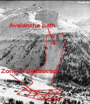 Классификация лавин ü По характеру движения и в зависимости от строения лавинного очага: ü Лотковая (движется по определенному каналу стока или лавинному лотку); ü Осовая (снежный оползень, не имеет определенного канала стока и скользит по всей ширине участка); ü Прыгающая ( возникает из лотковых там, где в канале стока имеются отвесные стены или участки с резко возрастающей крутизной, встретив крутой уступ, лавина отрывается от земли и продолжает движение по воздуху в виде огромной струи, скорость их особенно велика). ü От свойств снега: o Сухие; o Влажные; o Мокрые. ü По характеру поверхности скольжения: ü Пластовые, когда движение осуществляется по поверхности нижележащего слоя снега; ü Грунтовые - движение происходит непосредственно по поверхности грунта. ü От факторов лавинообразования: ü Непосредственная причина возникновения - метеорологические факторы. ü Возникающие в результате совокупного действия метеорологических факторов и процессов, происходящих внутри снежной толщи при таянии. ü Возникают исключительно в результате процессов, происходящих внутри снежной толщи. ü В результате землетрясения, деятельности человека (взрывы, полет реактивных самолетов на малой высоте и др.) ü По степени воздействия на хозяйственную деятельность и природную среду: ü Стихийные (особо опасные), когда их сход наносит значительный материальный ущерб населенным пунктам, спортивным и санаторно-курортным комплексам, железным и автомобильным дорогам, линиям электропередачи, трубопроводам, промышленным и жилым сооружениям; ü Опасные - сход лавин, затрудняющих деятельность предприятий и организаций, спортивных сооружений, а также угрожающих населению и туристским группам. ü По степени повторяемости: 1. Систематические – сходят каждый год или один раз в два-три года; 2. Спорадические - один-два раза в 100 лет, заранее определить их довольно трудно.