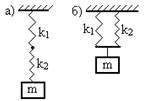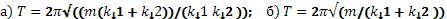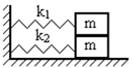 14.138. Две одинаковые стеклянные трубки соединены резиновой трубкой и представляют собой сообщающиеся сосуды. Если в систему налить воду и трубки расположить вертикально, то период колебаний уровня воды в трубках будет равен 1 с. Каким станет период колебаний, если трубки развести в противоположные стороны, наклонив их под углом 30º к вертикали? (» 1,15 с) 14.139. Груз массой 0,25 кг лежит на гладкой горизонтальной поверхности между двумя пружинами, жесткость которых равна 150 H/м и 250 H/м. Первоначально пружины ненагружены. В некоторый момент конец второй пружины резко сдвигают на расстояние 4 см в сторону груза и закрепляют. Определить амплитуду и максимальную скорость возникших колебаний. (2,5 см; 1 м/с) 14.140. Невесомая горизонтальная платформа стоит, как на ножках, на четырех одинаковых вертикальных пружинах. С высоты h в середину платформы падает кусочек пластилина массой m и прилипает к ней. Какова амплитуда возникших при этом колебаний? Жесткость каждой пружины равна k.