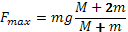 14.141. На груз массой М, висящий на пружине, кладут еще один груз массой m, удерживая систему в начальном положении. Затем грузы отпускают. Найти максимальную силу, действующую на верхний груз со стороны нижнего.