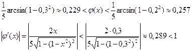 Проверим условия теоремы. Так как функция φ(x) монотонна на отрезке [0,2; 0,3], то нетрудно показать, что верны следующие неравенства:
