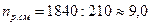 к = 211,4: 72,8 = 2,903.