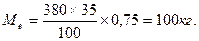 где Ve – вместимость месильного корыта, л; q − количество муки на 100 л геометрического объема емкости, равное для муки пшеничной первого сорта 30 кг/л и для муки пшеничной высшего сорта 35 кг/л [1, с.92]; 0,75 – коэффициент использования емкости. В тесто добавляется вода, количество которой В, л, рассчитывается по формуле