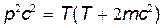 где T — кинетическая энергия частицы; • Связь полной энергии с импульсом релятивистской частицы: