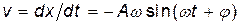 где ν и Т — частота и период колебаний. • Скорость точки, совершающей гармонические колебания: