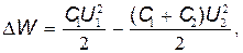 где С 1 и С 2 - электроемкости первого и второго конденсаторов; U 1- разность потенциалов, до которой был заряжен первый конденсатор; U 2 - разность потенциалов на зажимах батареи конденсаторов. Учитывая, что заряд после присоединения второго конденсатора остался прежним, выразим разность потенциалов U 2следующим образом: