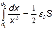 После сокращения на ε0 S формула примет вид A=ε 0 S E 2 (d 2 – d 1)/2 d 12. (3) Произведя вычисления по формуле (3), найдем A= 3,98 мкДж. 2-й случай. Пластины остаются подключенными к источнику тока и система двух пластин уже не является изолированной (заряд с пластин при их раздвижении перемещается к клеммам батареи). Поэтому воспользоваться законом сохранения энергии в этом случае нельзя. Заметим, что при раздвижении пластин конденсатора: а) разность их потенциалов остается неизменной (U= E); б) емкость будет уменьшаться (С = ε 0 S / d). Будут уменьшаться также заряд на пластинах (Q=CU)и напряженность электрического поля (Е = U/d).Так как величины Е и Q, необходимые для определения работы, изменяются, то работу следует вычислять путем интегрирования. Напишем выражение для элементарной работы: dA=QE 1 dx, (4) где E 1- напряженность поля, создаваемого зарядом одной пластины. Выразим напряженность поля E 1и заряд Q через расстояние х между пластинами: E 1= 1/2 Е = E / 2 х и Q = C E, или Q = ε0 S E/ x. Подставив эти выражения E 1и Q в равенство (4), получим dA= Проинтегрировав это равенство в пределах от d 1 до d 2,найдем выражение искомой работы: