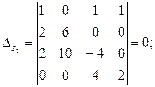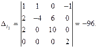 Решение. Силы токов в разветвленной цепи определяют с помощью законов Кирхгофа. Чтобы найти четыре значения силы токов, следует составить четыре уравнения. Перед составлением уравнений по закону Кирхгофа необходимо, во-первых, выбрать произвольно направления токов, текущих через сопротивления, указав их стрелками на чертеже, и, во-вторых, выбрать направление обхода контуров (последнее только для составления уравнений по второму закону Кирхгофа). Выберем направления токов, как они показаны на рис. 41, и условимся обходить контуры по часовой стрелке. Рассматриваемая в задаче схема имеет два узла: А и В. Но составлять уравнение по первому закону Кирхгофа следует только для одного узла, так как уравнение, составленное для второго узла, будет следствием первого уравнения. При составлении уравнений по первому закону Кирхгофа необходимо соблюдать правило знаков: ток, подходящий к узлу, входит в уравнение со знаком плюс; ток, отходящий от узла, - со знаком минус. По первому закону Кирхгофа для узла В имеем I 1+ I 2+ I 3 – I 4=0. Недостающие три уравнения получим по второму закону Кирхгофа. Число независимых уравнений, которые могут быть составлены по второму закону Кирхгофа, также меньше числа контуров (в нашем случае контуров шесть, а независимых уравнений три). Чтобы найти необходимое число независимых уравнений, следует придерживаться правила: выбирать контуры таким образом, чтобы в каждый новый контур входила хотя бы одна ветвь, не участвовавшая ни в одном из ранее использованных контуров. При составлении уравнений по второму закону Кирхгофа необходимо соблюдать следующее правило знаков: а) если ток по направлению совпадает с выбранным направлением обхода контуров, то соответствующее произведение IR входит в уравнение со знаком плюс, в противном случае произведение IR входит в уравнение со знаком минус, б) если ЭДС повышает потенциал в направлении обхода контура, т.е. если при обходе контура приходится идти от минуса к плюсу внутри источника, то соответствующая ЭДС входит в уравнение со знаком плюс, в противном случае - со знаком минус. По второму закону Кирхгофа имеем соответственно для контуров AR 1 BR 2 A, AR 1 BR 3 A, AR 3 BR 4 A: I 1 R 1 – I 2 R 2 = E1 – E 2,(1) I 1 R 1 – I 3 R 3 = E1, (2) I 3 R 3 + I 4 R 4 = 0. (3) Подставив в равенства (1)-(3) значения сопротивлений и ЭДС, получим систему уравнений: I 1 +I 2 +I 3 – I 4 = 0, 2 I 1 - 4 I 2=6, 2 I 1 - 4 I 3=10, 4 I 3 + 2 I 4=0. Поскольку нужно найти только два тока, то удобно воспользоваться методом определителей (детерминантов). С этой целью перепишем уравнения еще раз в следующем виде: I 1 +I 2 +I 3 -I 4 = 0, 2 I 1 - 4 I 2+0+0=6, 2 I 1+0 - 4 I 3+0=10, 0+0+4 I 3 + 2 I 4=0. Искомые значения токов найдем из выражений I 2 = ΔI2/Δи I 3 = ΔI3/Δ, где Δ- определитель системы уравнений; ΔI2и ΔI3 - определители, полученные заменой соответствующих столбцов определителя
