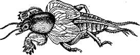 Рис. 364. Ногохвостка — зеленый сминтур Smin- thurus viridis (по Берне- РУ) Отряд 1. Щетинкохвостки (Thysanura). Удлиненное стройное тело обычно покрыто чешуйками. Брюшко 10-члениковос, сохраняются рудименты брюшных конечностей — грифельки. На заднем конце брюшка 3 многочленистых придатка. Ротовые органы грызущие, имеются сложные глаза и простые глазки. Развитие без метаморфоза. Обычны в почве, подстилке и жилых помещениях. Представители: Machilis, Lepisma (рис. 366) и др. Около 400 видов. Отряд 2. Прямокрылые (Orthoptera). Надкрылья кожистые, в покое выпрямлены на спине, задние крылья более нежного строения; крылья иногда недоразвиты. Задние ноги обычно прыгательные. Ротовые части грызущие. Превращение неполное. К отряду относятся: кузнечики, саранча, сверчки, медведки. Около 20000 видов. В состав отряда входят опасные вредители сельского хозяйства. В первую очередь, это некоторые виды саранчи, образующие стаи: перелетная саранча — Locusta migratorla (см. рис. 350), пустынная саранча— Schistocerca gregaria и др. Размеры стай иногда настолько велики, что занимают площадь в сотни гектаров. Во время миграций стая уничтожает практически всю растительность, встречающуюся у нее на пути. В 1962 г. саранча проникла в Туркмению из Ирана и Афганистана. Общий фронт распространения насекомых составлял 160 км. Ощутимый вред причиняют также и обитающие в почве медведки, повреждающие корневую систему растений (рис. 367). Отряд 3. Термиты (Isoptera). Передние и задние крылья отпадающие, имеются лишь у половых особей. Образуют общества и строят под-