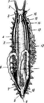 Рис. 420. Анатомия самки Peri- patoides novae-zcalandiae (no Снодграссу):