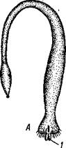 Бороздчатобрюхие обитают в илу или поселяются на колониях гидроидных полипов, гидрантов которых объедают. Это морские малоподвижные животные, встречающиеся преимущественно на глубинах. Число известных видов около 150. Их длинное червеобразное тело иногда достигает 30 см. На месте ноги у части бороздчатобрюхих имеется продольный мерцательный желобок с узким килем, представляющим рудимент ноги. Радула рудиментарна или отсутствует. Кишка прямая, многие виды лишены желудка и печени. Жабры отсутствуют (Рагате-nia, Neomenia; рис. 432,5) или же они представлены одной парой, расположенной на заднем конце тела (Chaetoderma; рис. 432,Л). Нервная система очень близка к таковой Loricata. Среди бороздчатобрюхих встречаются как гермафродитные, так и раздельнополые формы. Развитие осуществляется с метаморфозом, во время которого у животного на одной из стадий закладываются спинные пластинки, позднее отпадающие и заменяющиеся мелкими спи-кулами. ПОДТИП РАКОВИННЫЕ (CONCHIFERA) Моллюски с известковой раковиной, цельной или разделенной на две боковые створки. Покровы без кутикулы. Внутренностный мешок часто хорошо развит. Нервная система чаще разбросанно-узлового типа. Боковые нервные стволы сзади соединяются под задней кишкой. На голове расположены глаза и щупальца. Имеются статоцисты.