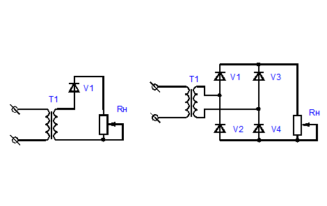 Схема однополупериодного выпрямителя