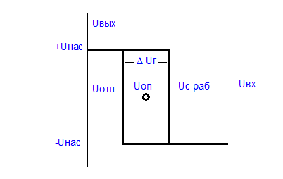 Возвращение компаратора в исходное состояние происходит при напряжении отпускания Uотп, которое равно