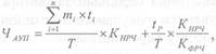 де ЧАУП - чисельність адміністративно-управлінського персоналу певної професії тощо; n - кількість видів організаційно-управлінських робіт, які визначають завантаження певної категорії спеціалістів; mі - середня кількість дій (розрахунків, обробка замовлень, переговорів тощо) в межах і-го виду робіт за встановлений період часу (наприклад, за рік); tі - час, необхідний для виконання одиниці в межах і-го виду робіт; Т - робочий час спеціаліста згідно з трудовим договором (контрактом) за відповідний період календарного часу, прийнятий у розрахунках; Кнрч - коефіцієнт необхідного розподілу часу; Кфрч - коефіцієнт фактичного розподілу часу; tj - час на різні роботи, що їх неможливо врахувати в попередніх планових розрахунках. Коефіцієнт необхідного розподілу часу (Кнрч) розраховують за формулою: