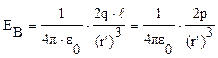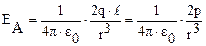 Напряженность поля в вакууме на перпендикуляре, восстановленном к оси из его середины (в точке В - рисунок 12 б):