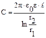 г2 — радиус внешней обкладки; r1 — радиус внутренней обкладки. Электроемкость сферического конденсатора