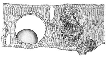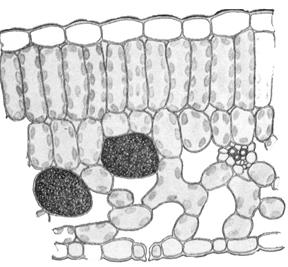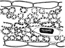 5. В какой части листа располагаются клетки-мешки с кристаллическим песком?