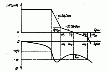 Следовательно, при заданных запасах устойчивости по модулю и фазе на логарифмических амплитудной и фазовой характеристиках всегда можно определить области, в которые эти характеристики не должны заходить. Следовательно вопрос устойчивости решается без нахождения точного решения исходной системы дифференциальных уравнений путем соответствующего выбора вида логарифмических характеристик.