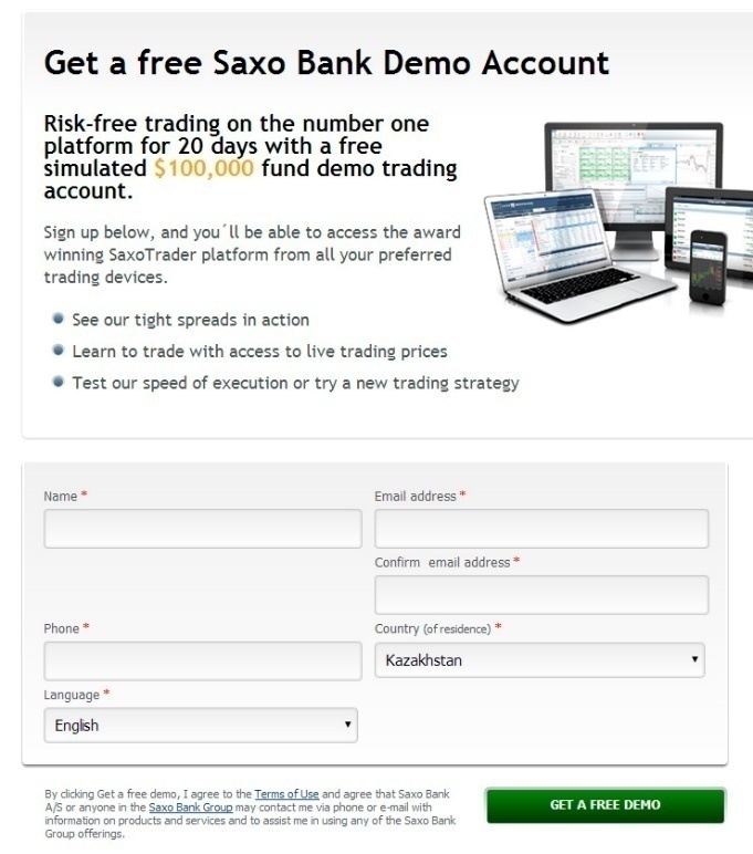 Нажмите http://www.saxobank.com/demo-account/ чтобы открыть демо счет.