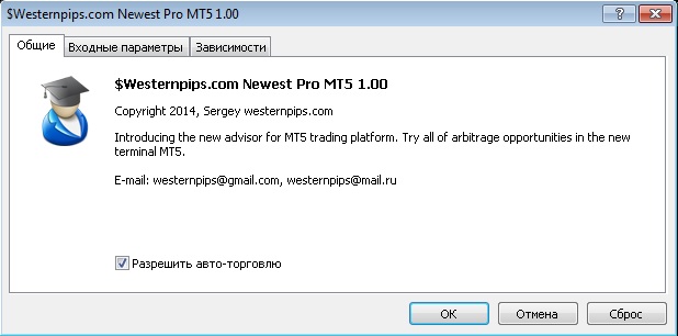 10. На вкладке “Общие” поставьте галочку “Разрешить авто торговлю”.